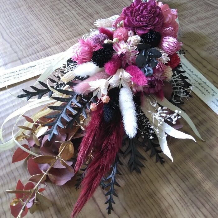 スワッグはお箱に入れますが、繊細ですのでお花が落ちる場合がございます。